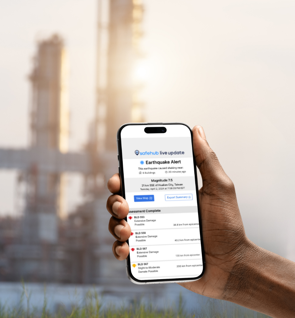 Safehub closes this information gap by delivering asset-specific, near real-time shaking and damage data.